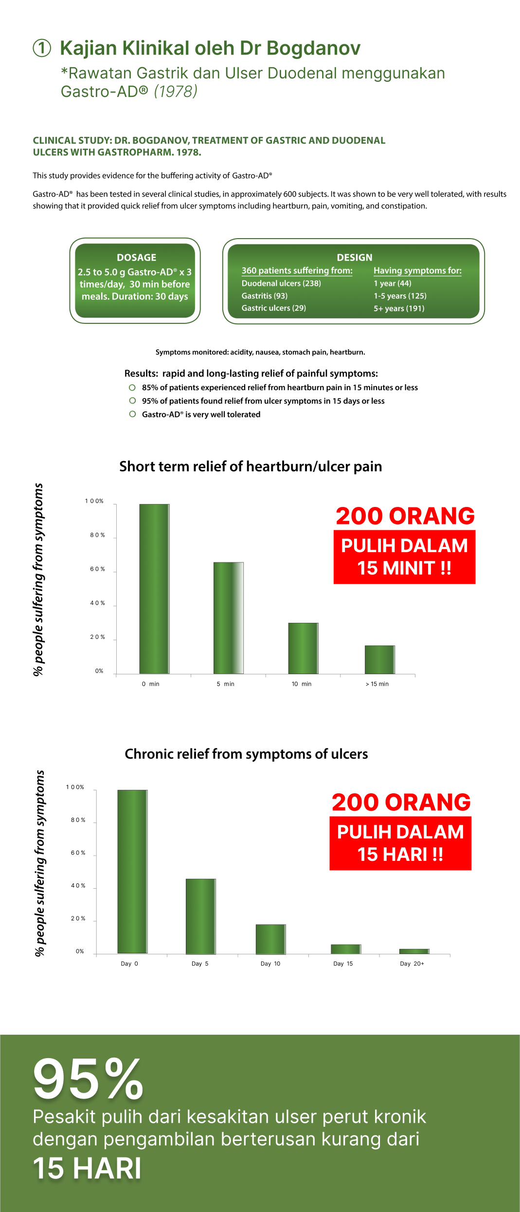 Kebanyakan pengguna mendapat kesan seawal 10 minit bagi kelegaan dari pedih ulu hati & asid refluks.