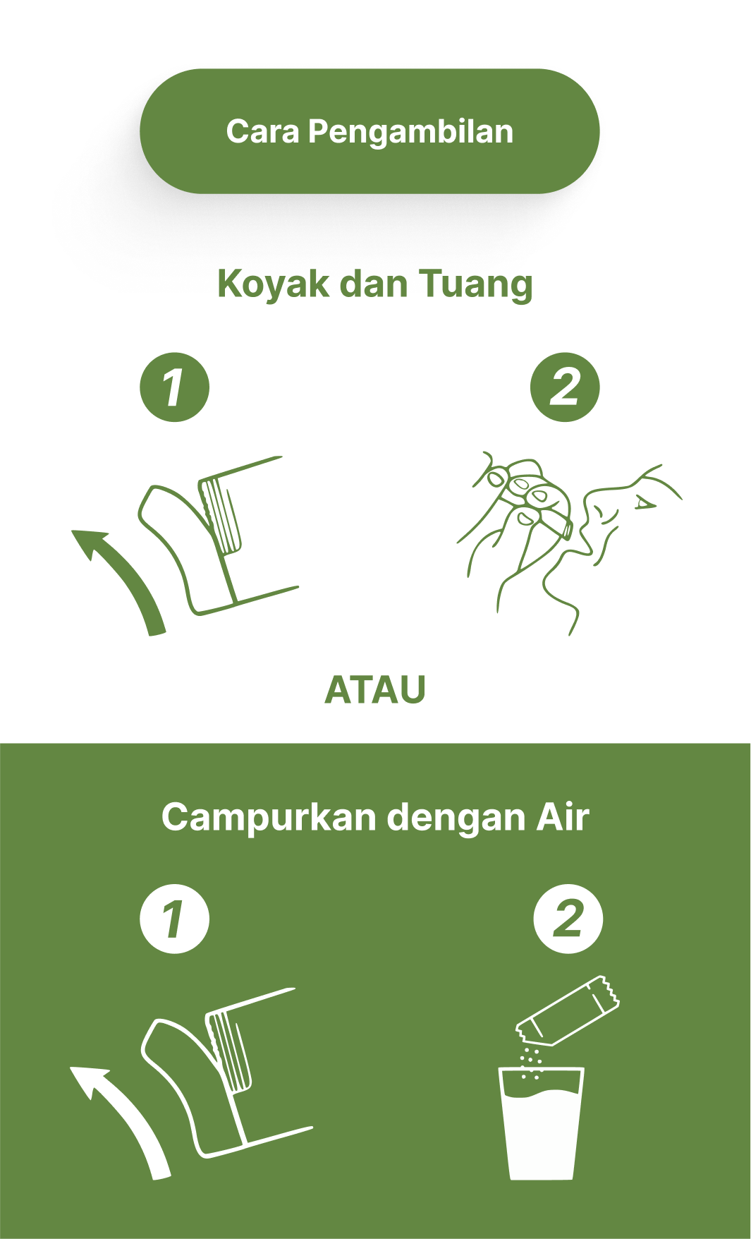 Untuk kesan yang paling optimum, minum terus dari sachet SELEPAS makan.