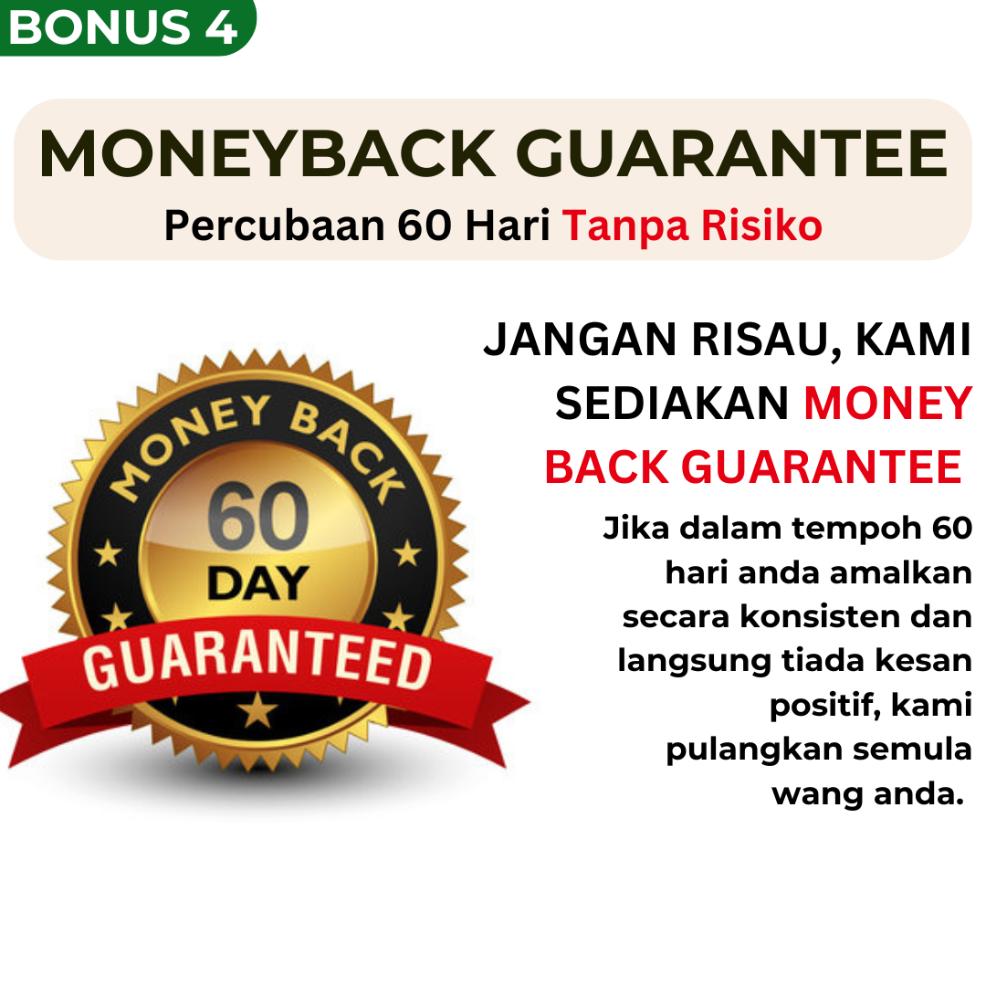 *JAMINAN MONEY BACK GUARANTEE HANYA UNTUK PEMBELIAN PAKEJ 3 KEATAS SAHAJA